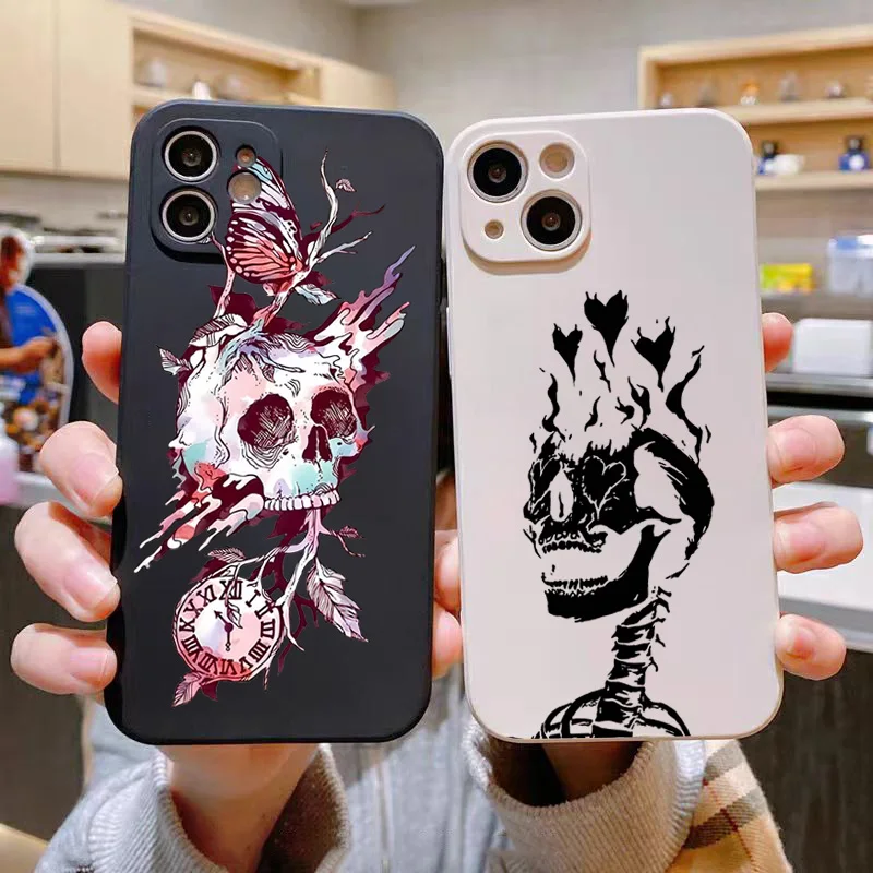 Aesthetic Flower Skeleton Skull Phone Case For Xiaomi Redmi Note 13 11 12 Pro Plus 5G 10 10S 11S 12S Cover For Redmi 12C 13C 4G