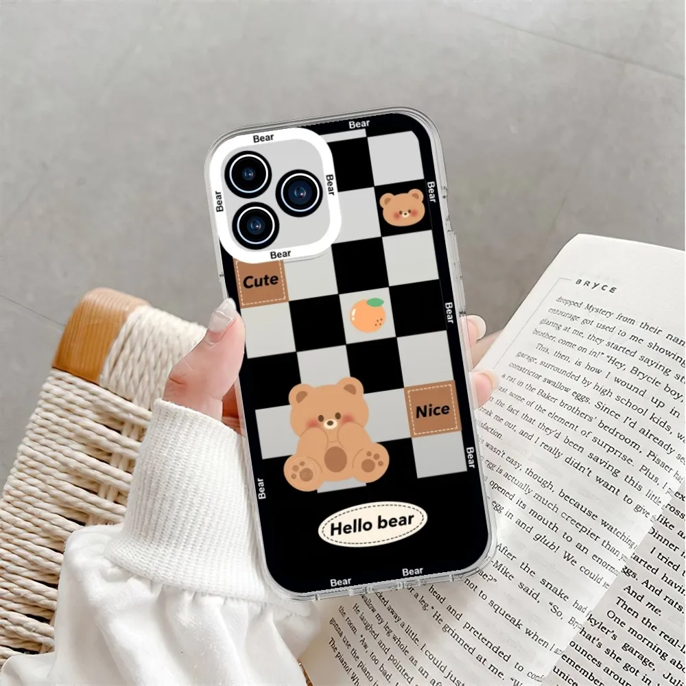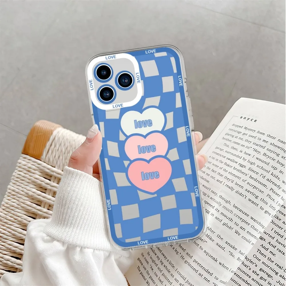 Checkerboard Heart Cute Phone Case For Samsung Galaxy S23 S22 S21 S20 Plus lite Ultra Transparent Shell